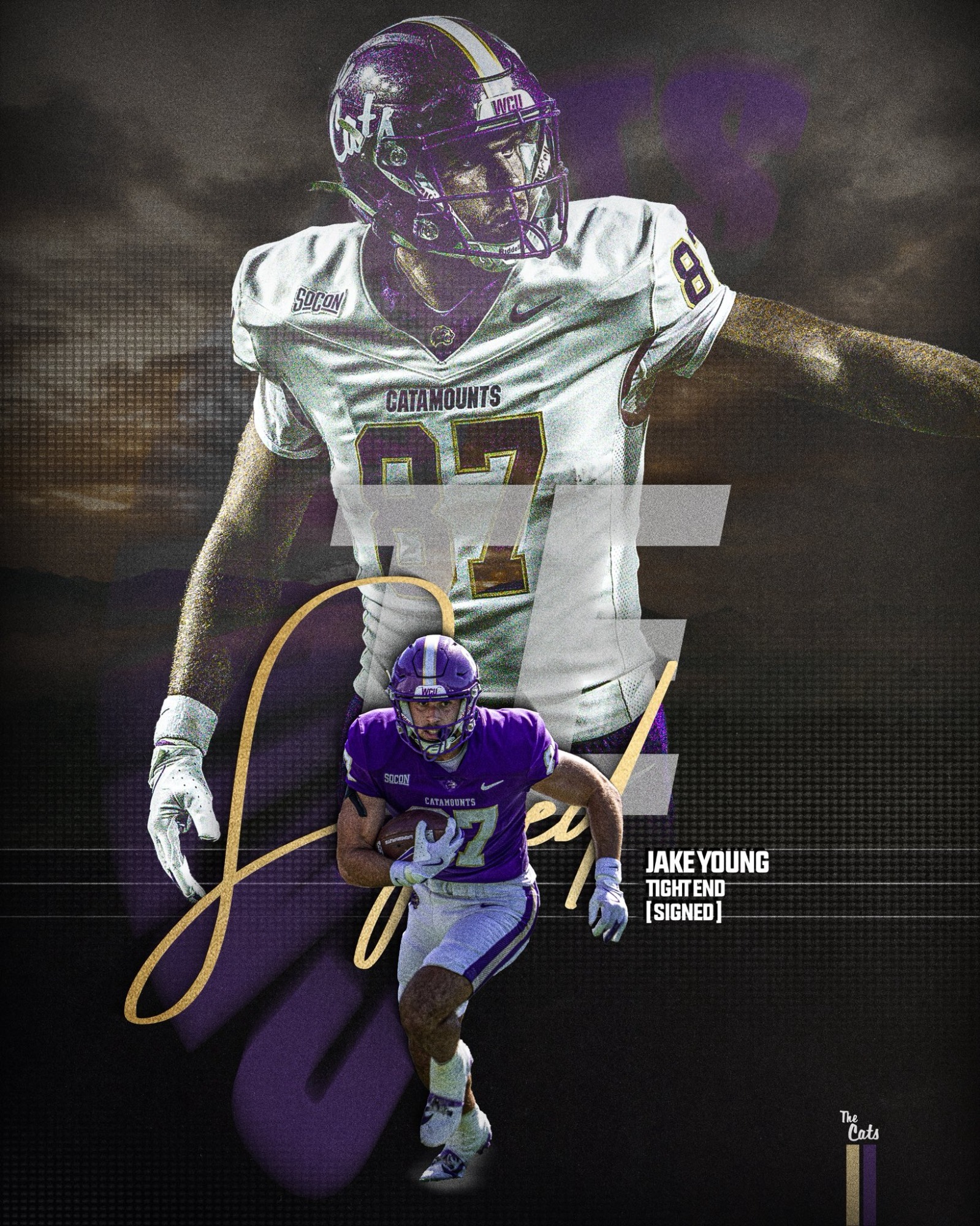 Prior to Western Carolina: Young returns to Cullowhee after spending a season at Charlotte in 2025 … For the 49ers, he caught four passes for 30 yards with the receptions coming on the road against ECU and Army West Point … Before transferring to Charlotte, Young was a first-team All-Southern Conference selection at TE for the Catamounts in 2024 … He totaled 17 games played over two seasons in Cullowhee, which included 28 catches in 2024 for 321 yards and a pair of touchdowns … He scored in the 2024 opener on the road against NC State and in a road meeting against mountain-rival ETSU.