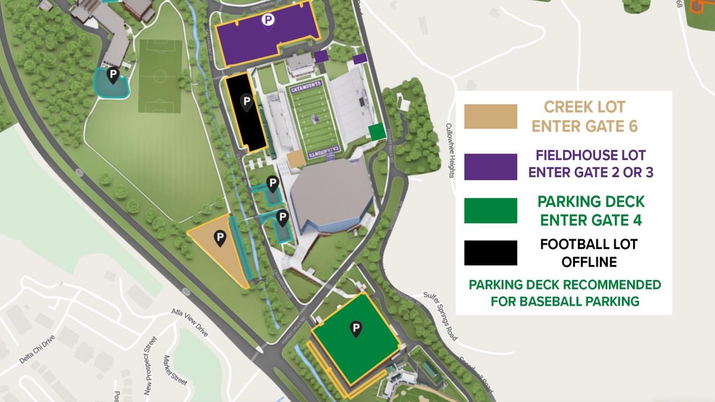 - Parking for Saturday's Spring Football Game is available in the lots surrounding E.J. Whitmire Stadium / Bob Waters Field, including the Field House Lots (Enter Gates 2 or 3), the Creek Lot (Enter Gate 6), and the Baseball Parking Deck (Enter Gate 4) … Those planning on attending the WCU baseball game following the football game are encouraged to park at the deck and utilize the sidewalks up the hill to the East Side grandstands;